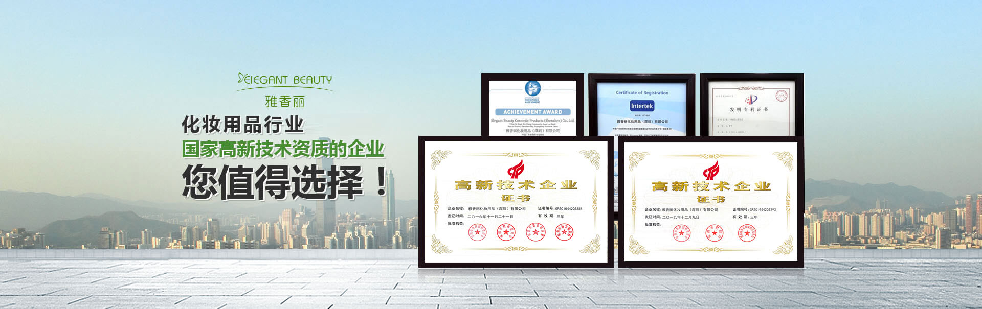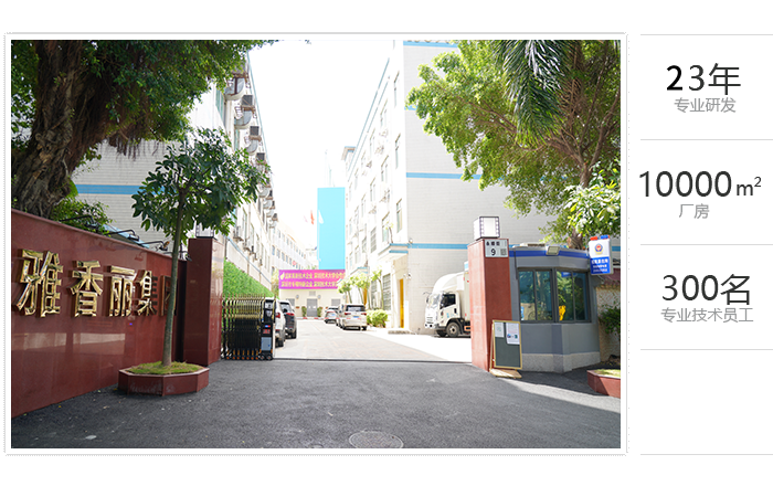 占地面積一萬余平方米,專業(yè)技術員工300余人,雅香麗憑借著在行業(yè)內(nèi)的專業(yè)化、精細化、特色化、新穎化、可持續(xù)化,榮獲國家"高新技術企業(yè)"、"深圳市專精特新中小企業(yè)"等重量級認證。